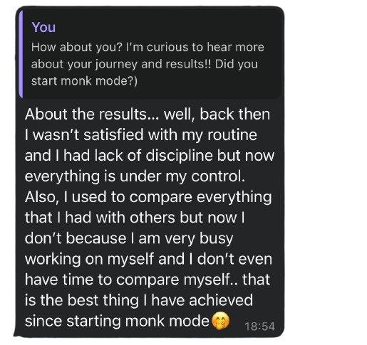 My approach is simple: I don’t impose my views, but help you discover your own path and stay focused on achieving it. After years of studying productivity, discipline, and mindfulness through courses, books, and more, as well as overcoming my own challenges, I’ve developed practical strategies to help you stay focused, build resilience, and achieve your goals with purpose.