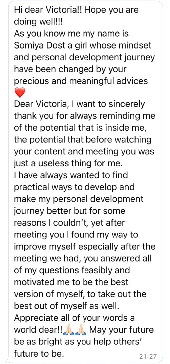 Victoria Vasileva has worked with and coached over 100 people, helping them transform their lives for the better. Whether it’s monetizing their passions, building discipline, or taking bold steps to follow their dreams, her guidance empowers lasting change.